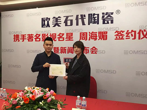 2016年3月16日,周海媚擔任歐美石代陶瓷品牌代言人簽約儀式。20世紀80、90年代,海媚的名字幾乎與港劇的全盛時期緊密聯系在一起的,《流氓大亨》、《義不容情》、《大鬧廣昌隆》、《今生無悔》幾乎每部都是當年的收視冠軍劇,海媚更連續三年被評為“香港地區最受歡迎的女演員”;現在的周海媚,蕙質蘭心,由內而外散發出來的魅力。