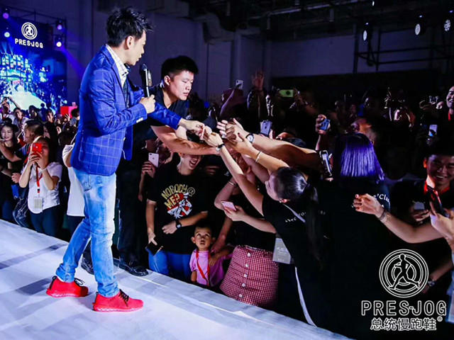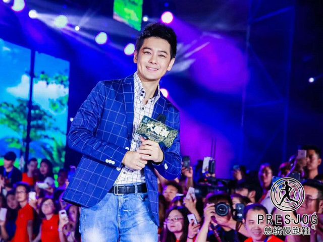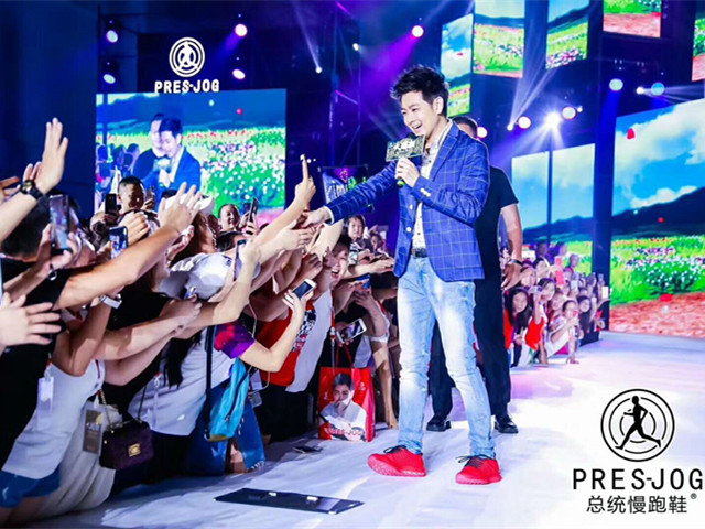 林志穎現身廈門參加其代言的”總統慢跑鞋”招商大會現場
