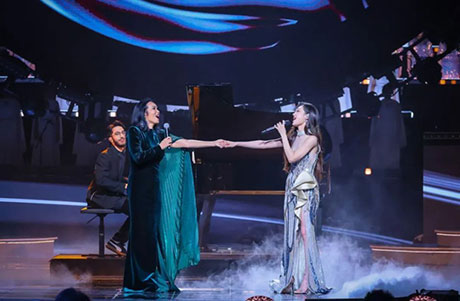 隨后,韋唯攜手青年才俊希林娜依·高,共同獻上了影視金曲《You Raise Me Up》。這首歌曲以其溫暖人心的旋律和積極向上的歌詞,觸動了在場每一位觀眾的心弦。韋唯與希林娜依·高的合唱,仿佛是兩個時代聲音的完美交融,既展現了音樂的傳承與延續,也傳遞了愛與希望的力量。歌聲中,他們共同詮釋了“你鼓舞了我”的深刻內涵,讓全球觀眾感受到了音樂跨越國界、連接人心的力量。