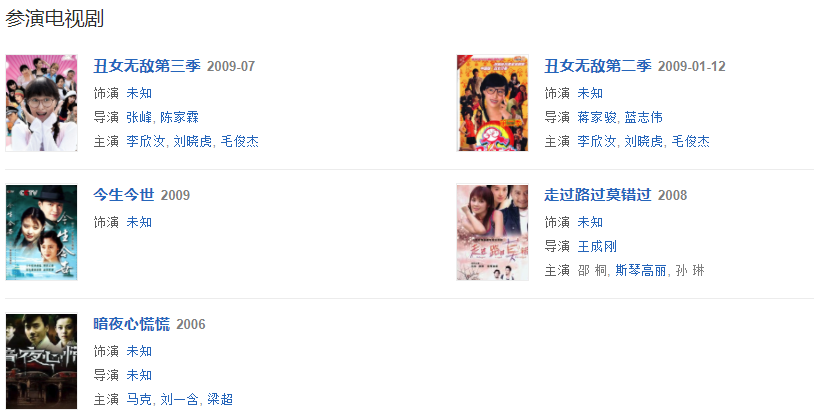 代表作品:播報多看點、中國夢想秀、轉角遇TA